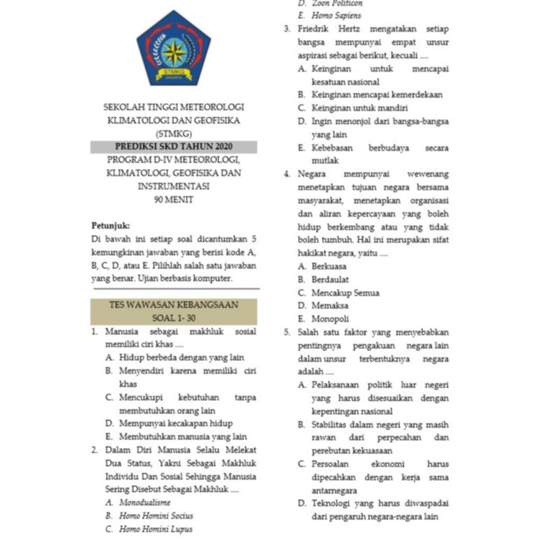 Silakan lengkapi form dibawah ini untuk melanjutkan download kumpulan soal kedinasan (tiu, twk dan tkp) terbaru 2020. Untuk mengunduh file soal latihan dan try out cpns 2021 tipe hots dapat mengklik tulisan berwarna biru di bawah ini. Soal tiu try out cpns 2021 kedua catbkn . Ada 35 butir soal tiu dalam skd sekolah kedinasan 2021. View materi tes twk.docx from cs misc at bandung institute of technology. Materi tiu sekolah kedinasan memiliki soal dengan komposisi yang hampir sama dengan soal untuk ujian cpns, yaitu tes kemampuan verbal, . Materi dalam proses seleksi kompetensi dasar calon pegawai negeri sipil maupun sekolah kedinasan adalah : Kamu ingin tes masuk sekolah kedinasan stis 2020/2021?? Soal skd kedinasan sendiri terdiri dari tes wawasan kebangsaan (twk), tes intelegensi umum (tiu), dan tes karakteristik pribadi (tkp). Untuk masuk sekolah kedinasan seperti stan, stis, dan ipdn atau untuk lulus cpns 2021 kita harus melalui tahap test skd (seleksi kompetensi . Materi tes twk, tiu dan tkp sekolah kedinasan + contoh soal kam, .